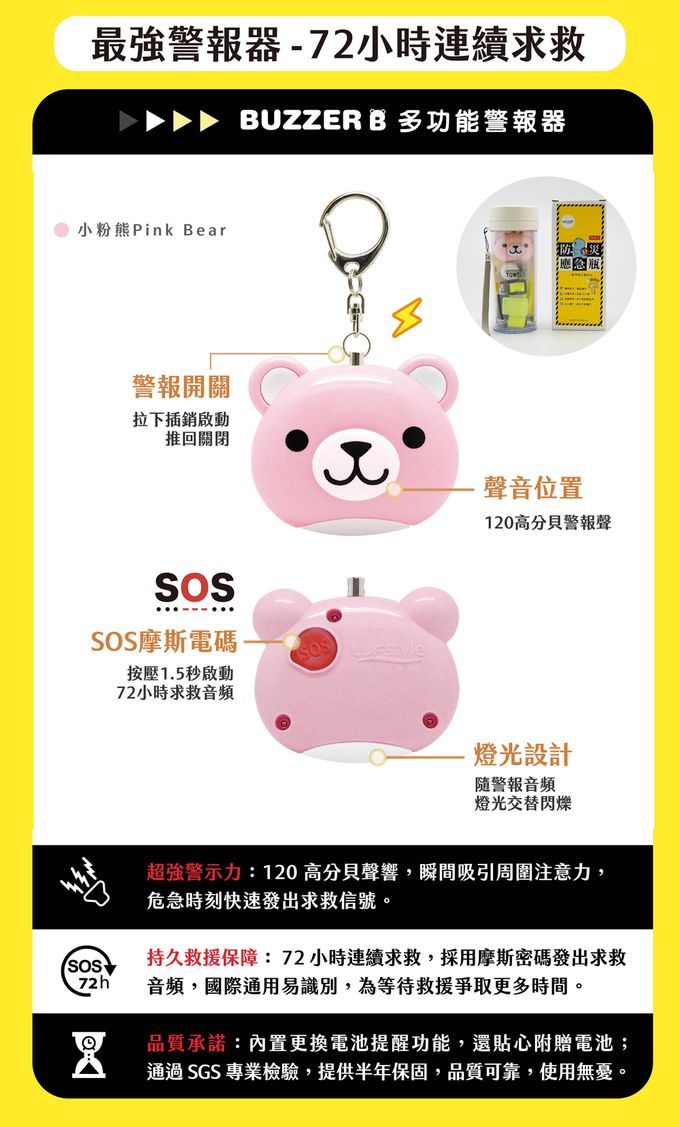LUFstyle - 全中文化防災瓶 避難 緊急 求生-10合一(含buzzer b.隨身警報器)-小粉熊