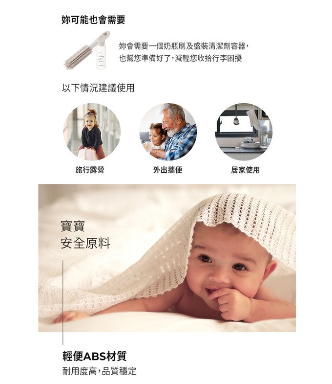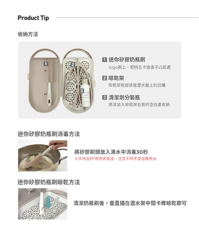附迷你矽膠奶瓶刷、清潔劑分裝瓶