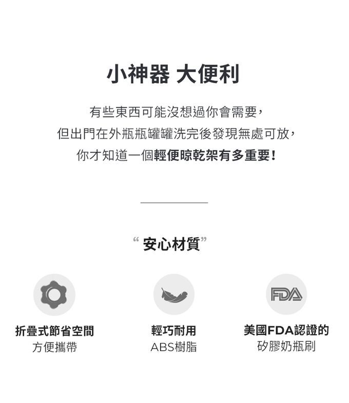 這個產品很精緻、收納方式也很棒,這樣外出旅行終於有更好的工具幫助晾奶瓶了
