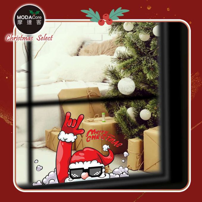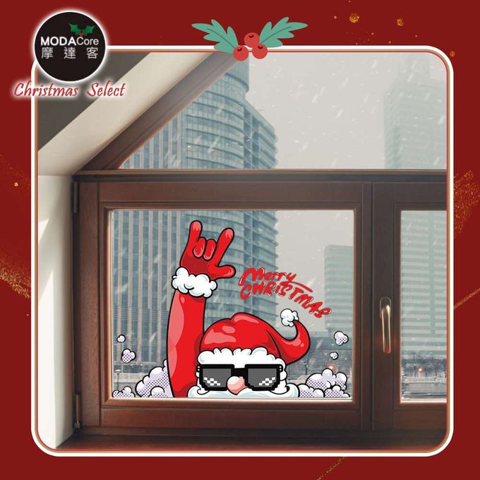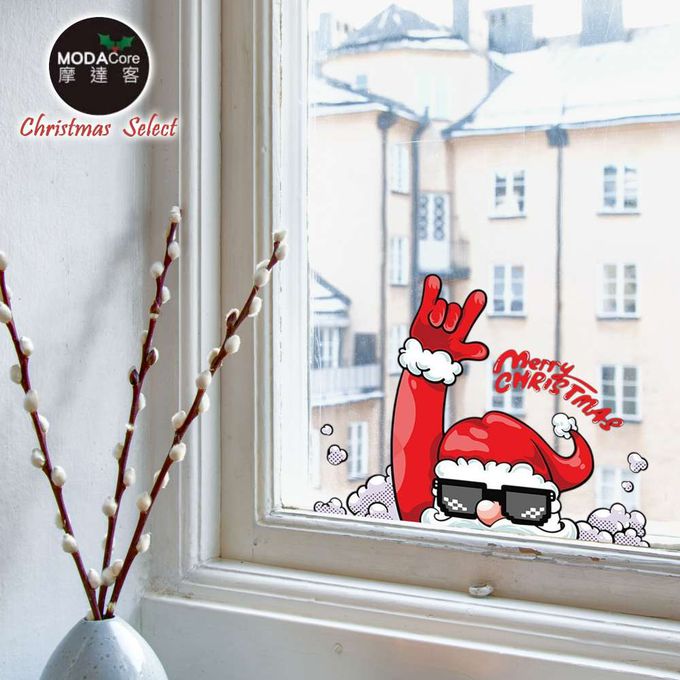 耶誕-紅色6號搖滾聖誕老人-無痕窗貼玻璃貼*2入優惠組合