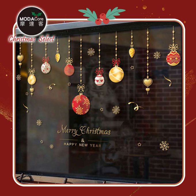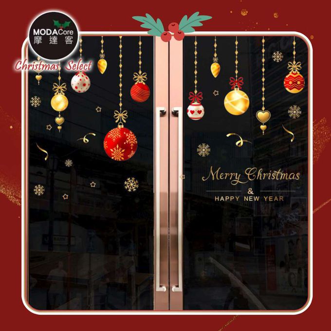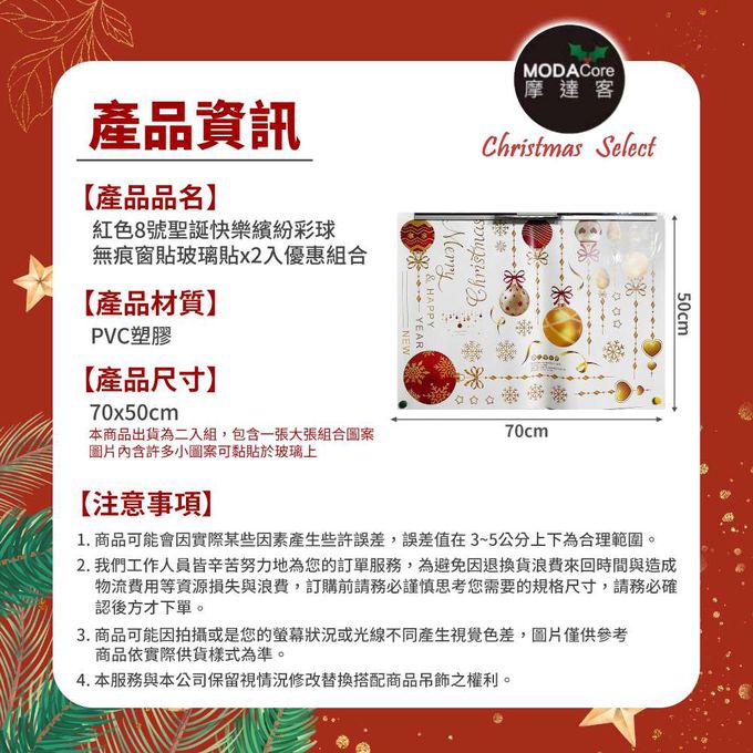 品名:耶誕-紅色8號聖誕快樂繽紛彩球-無痕窗貼玻璃貼*2入優惠組合