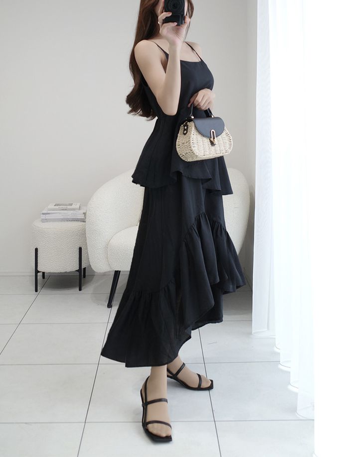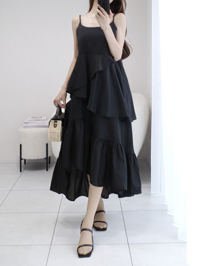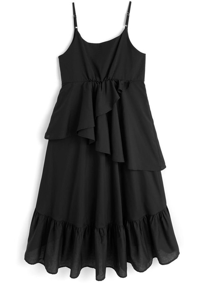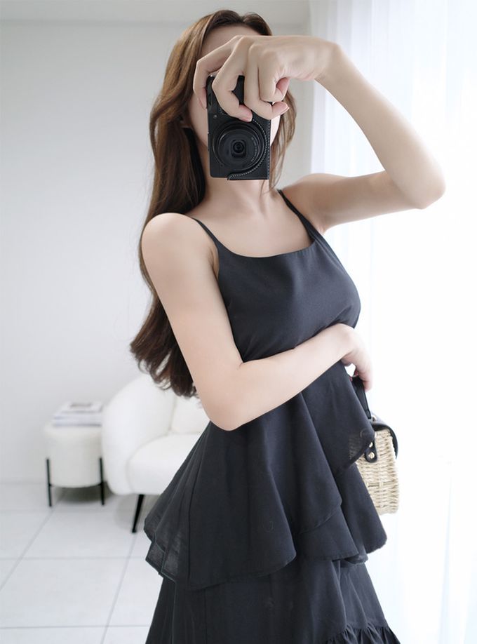 ![日本 GRL - 小V領氣質層次收腰無袖洋裝-經典黑]()