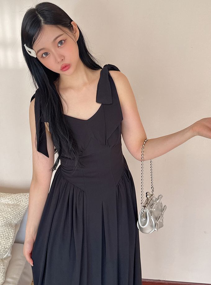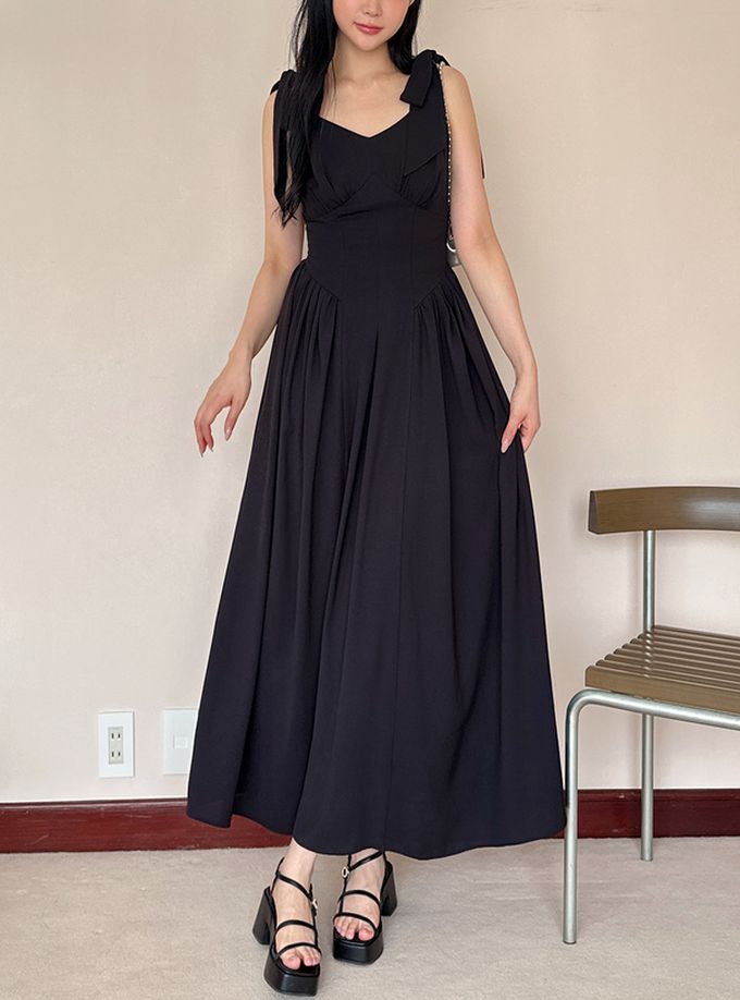 ![日本 GRL - 小V領氣質層次收腰無袖洋裝-經典黑]()