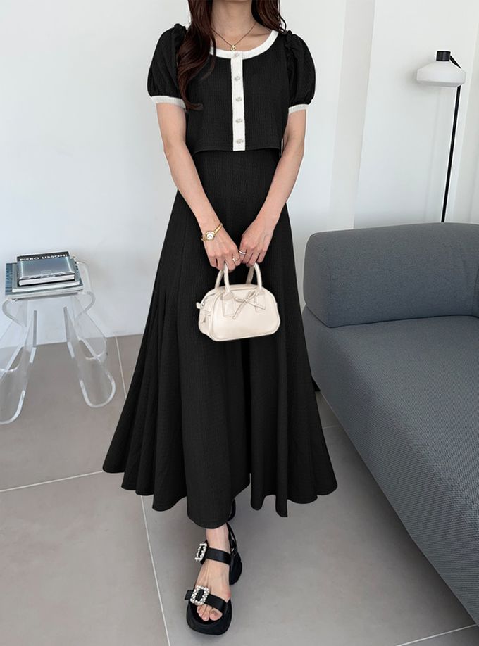 ![日本 GRL - 小V領氣質層次收腰無袖洋裝-經典黑]()