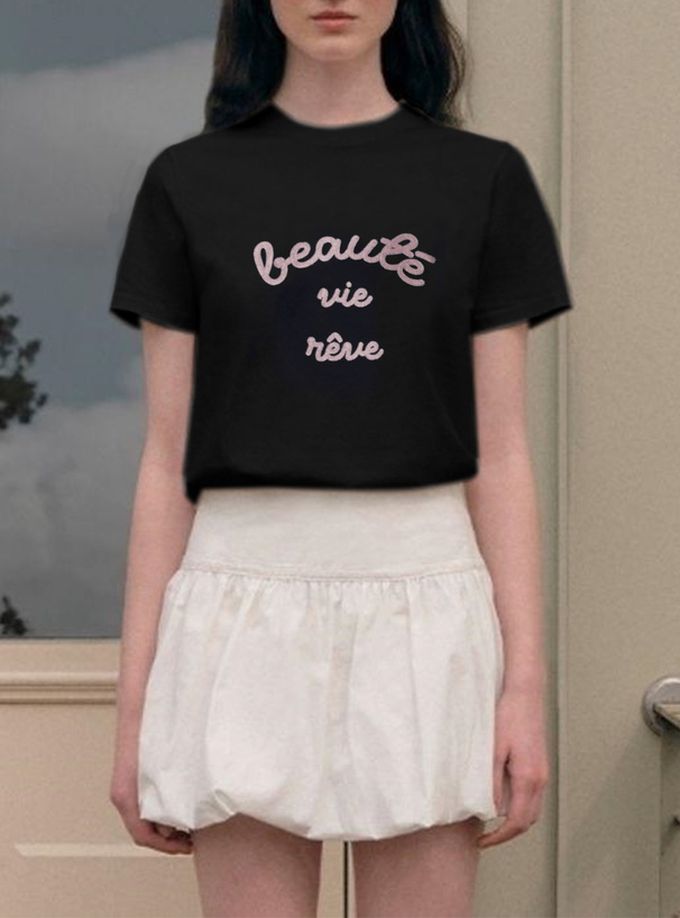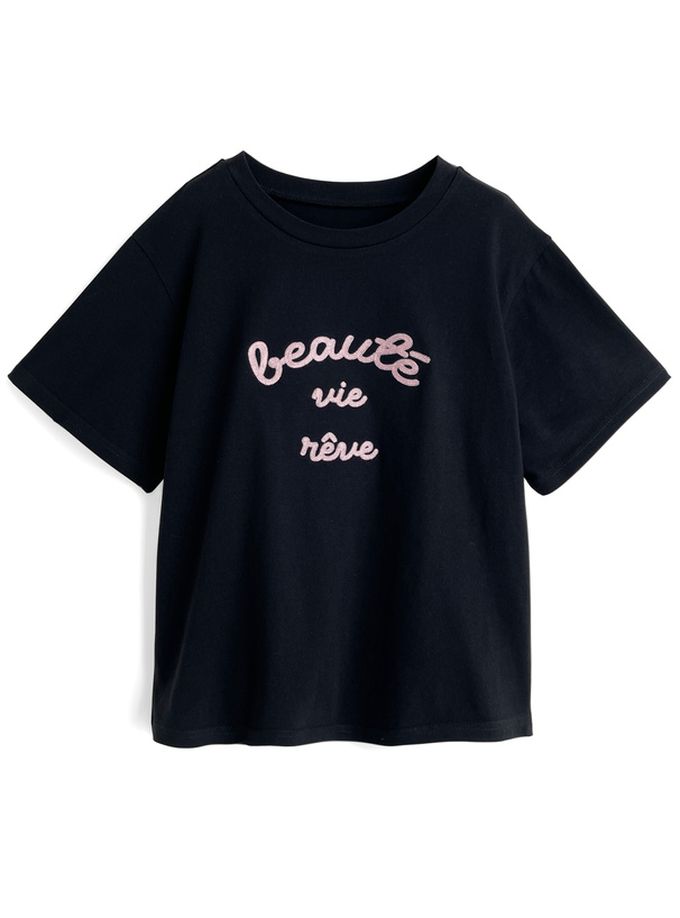 日本 GRL - 可愛法語印花休閒T恤-黑 (F)
