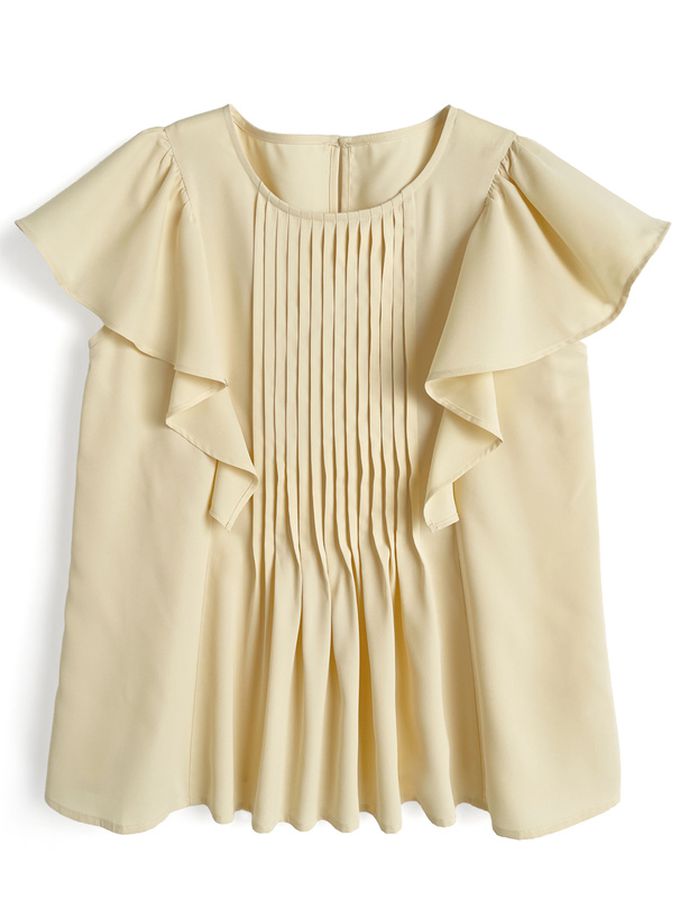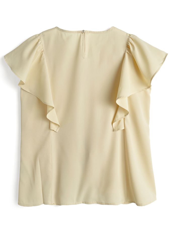日本 GRL - 氣質線條圓領荷葉短袖上衣-黃 (F)