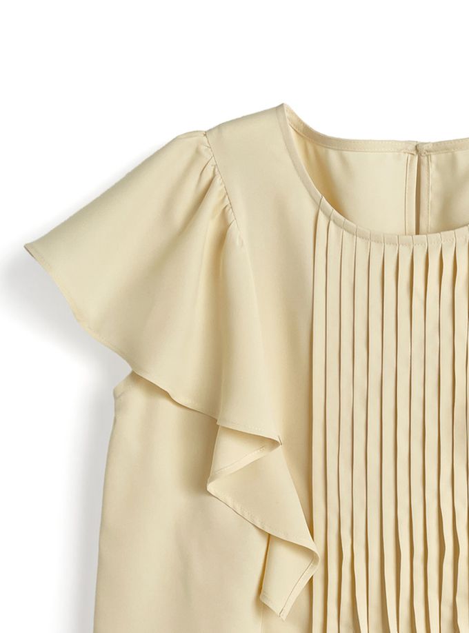 • 荷葉袖巧妙遮手臂,優雅兼具修飾力