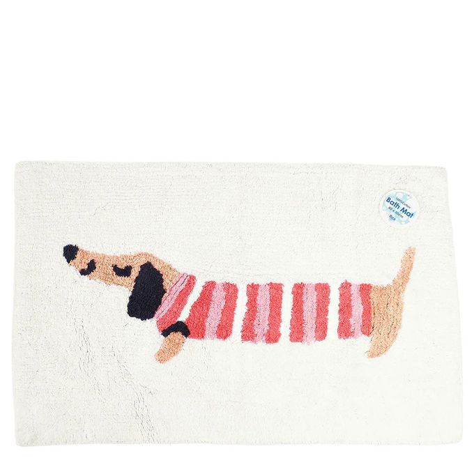 英國 Rex London - 印度製柔軟蓬鬆簇絨棉浴室地墊/腳踏墊/吸水地墊-臘腸狗