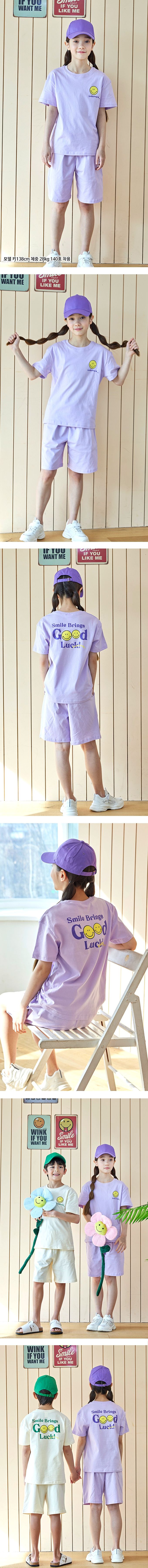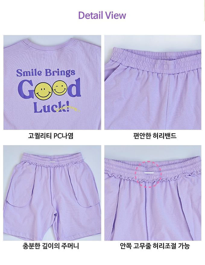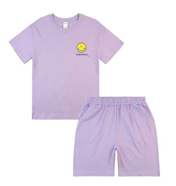 韓國 Lulumore - 舒適純棉短袖套裝-黃笑臉-薰衣草紫