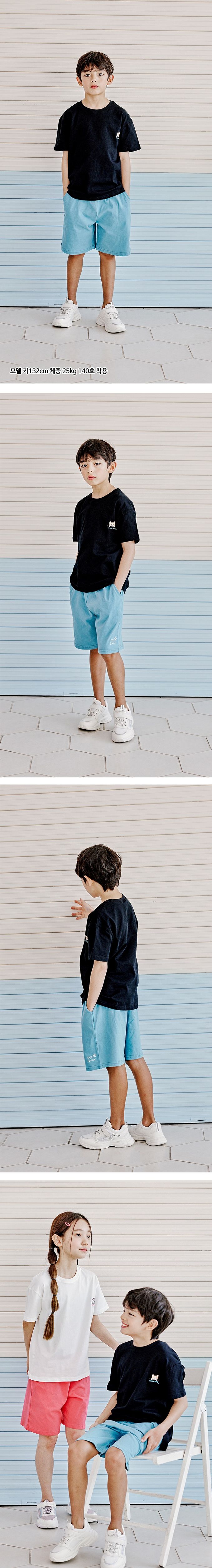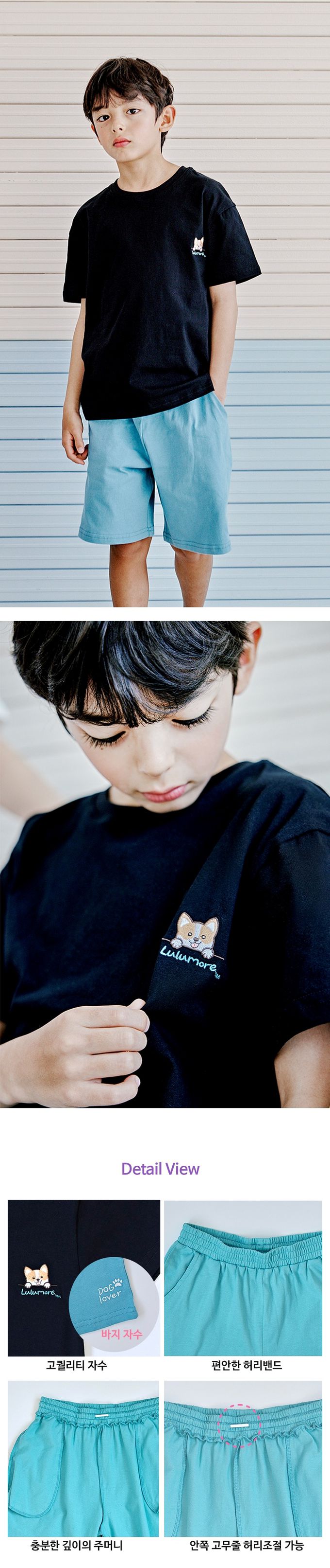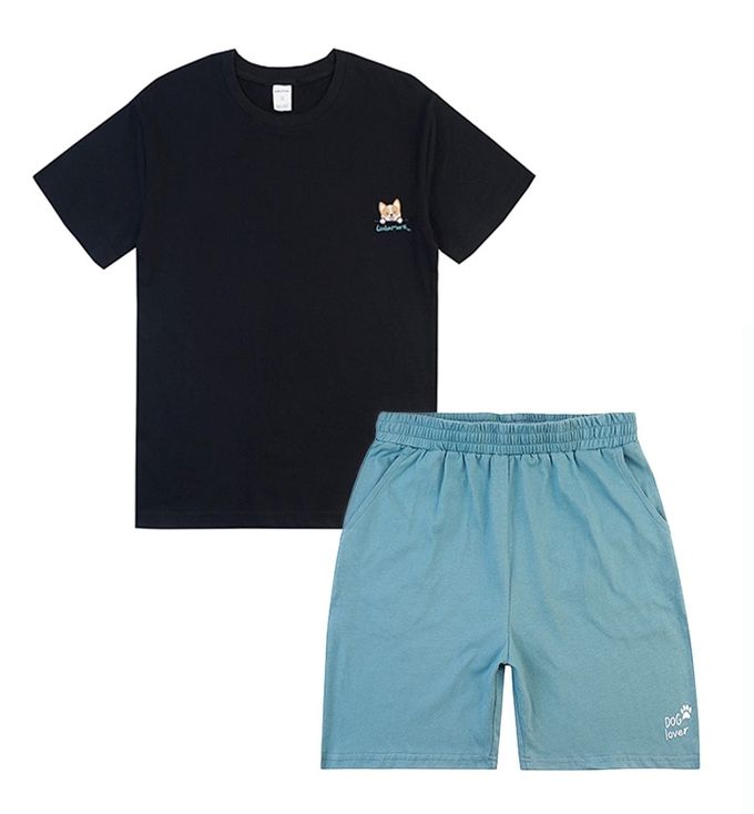 韓國 Lulumore - 舒適純棉短袖套裝-刺繡狗狗-黑X薄荷藍