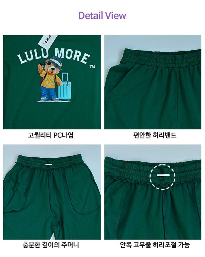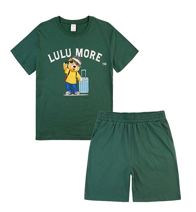 韓國 Lulumore - 舒適純棉短袖套裝-旅行熊熊-森林綠