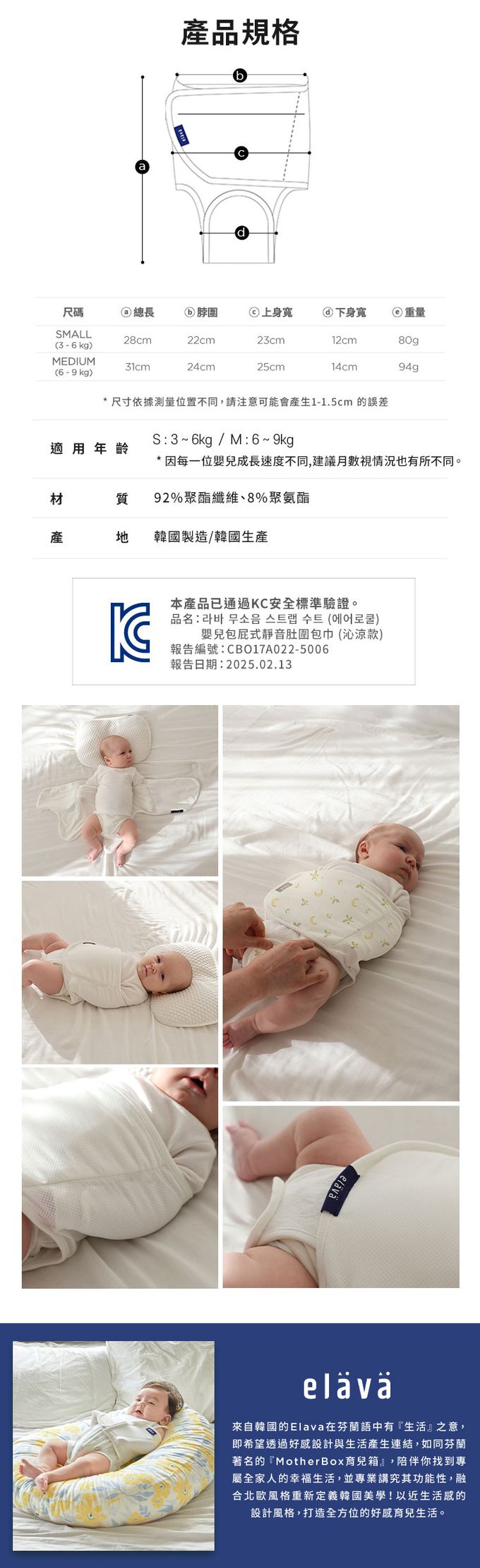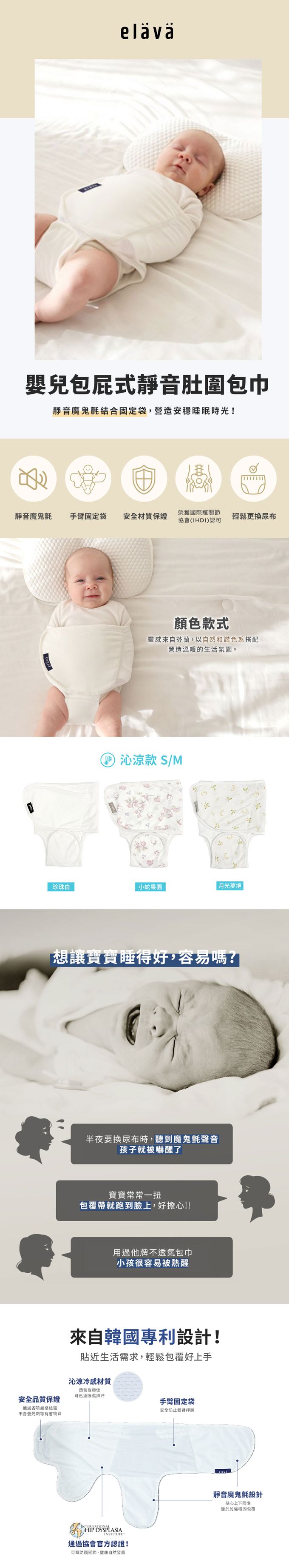 Elava 韓國 嬰兒包屁式靜音肚圍包巾