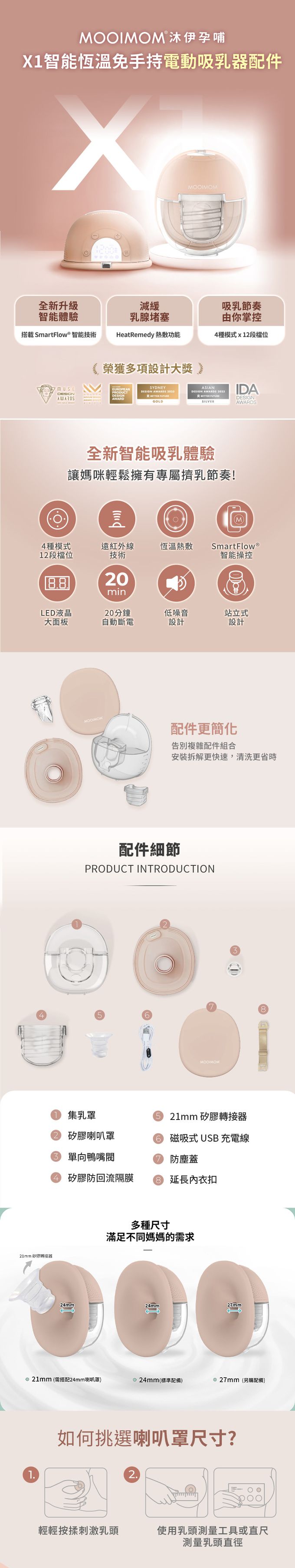 |MOOIMOM 沐伊孕哺 X1智能恆溫免手持電動吸乳器配件-24 mm配件組|