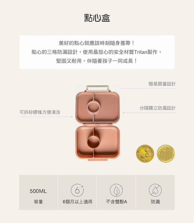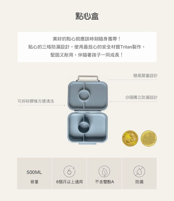 親子三件組禮盒,適合日常使用、戶外野餐、幼兒園便當日●3 格隔間乾淨不混味的點心盒●可拆式矽膠條方便清洗●保溫瓶防漏設計,三層絕緣不鏽鋼 (304)●保持水冷長達 24 小時,熱水長達 12 小時●餐具收納袋由食品級矽膠製成,方便攜帶●小尺寸,安全且適合小手抓握