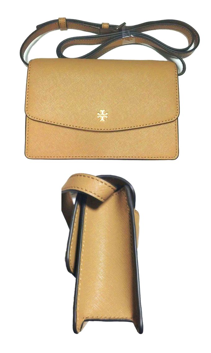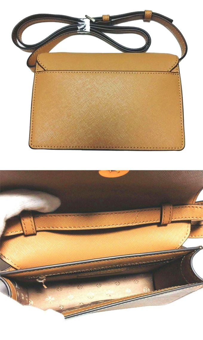 雙T-LOGO皮革翻蓋斜背包 (駝)