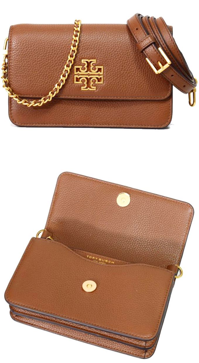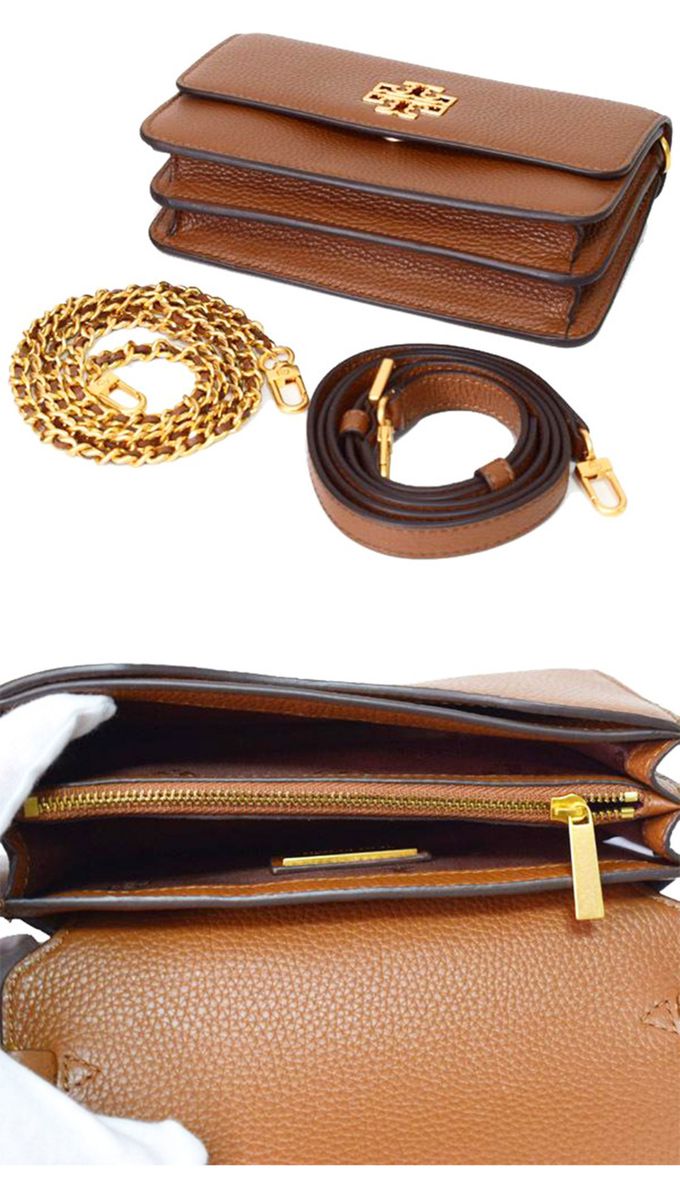 雙TLOGO翻蓋皮革斜背鍊包 (焦糖)