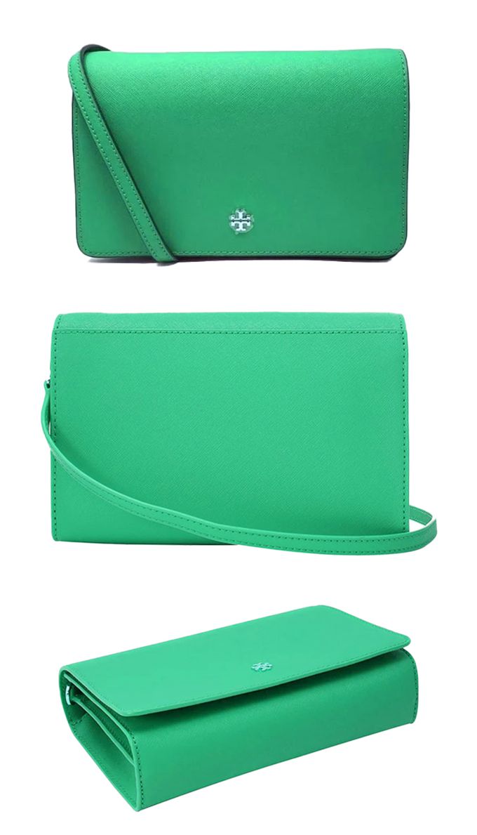 雙TLOGO皮革翻蓋斜背包 (綠)
