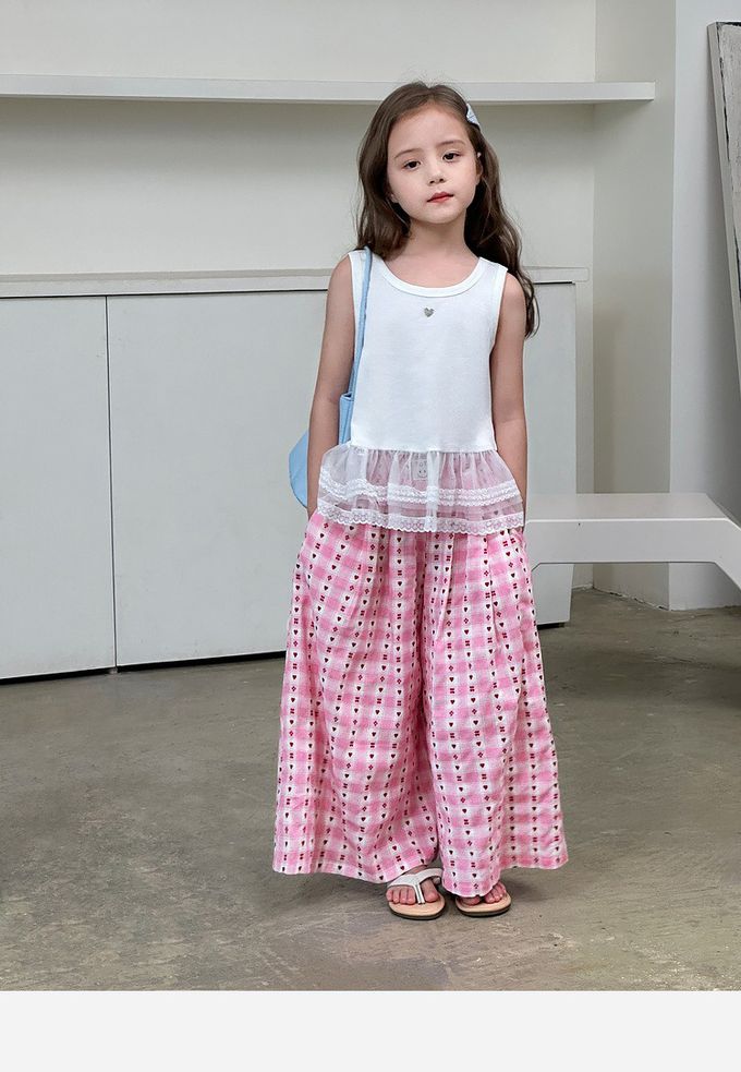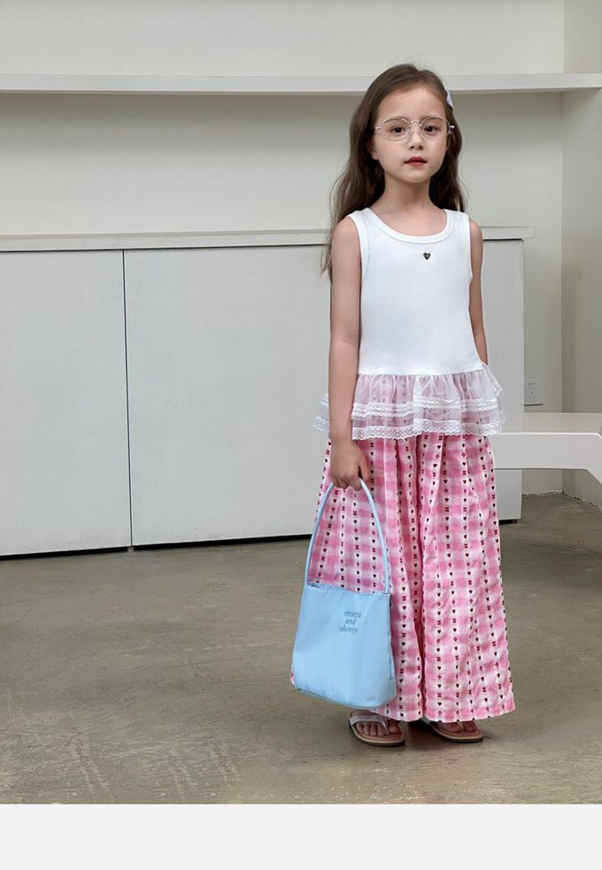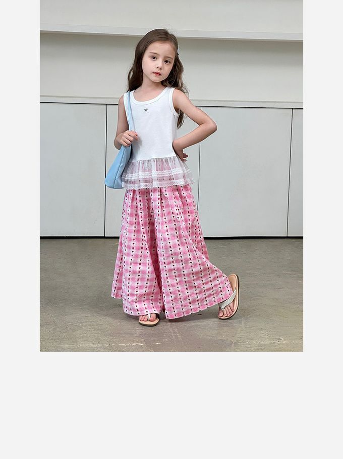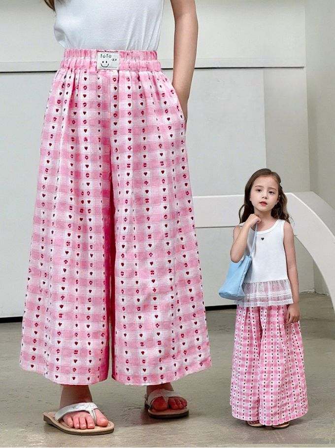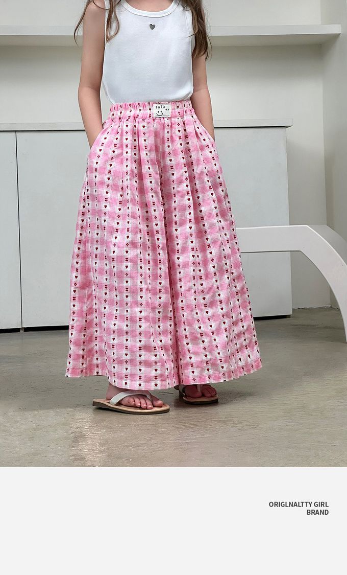 品名:甜心格紋提花寬褲