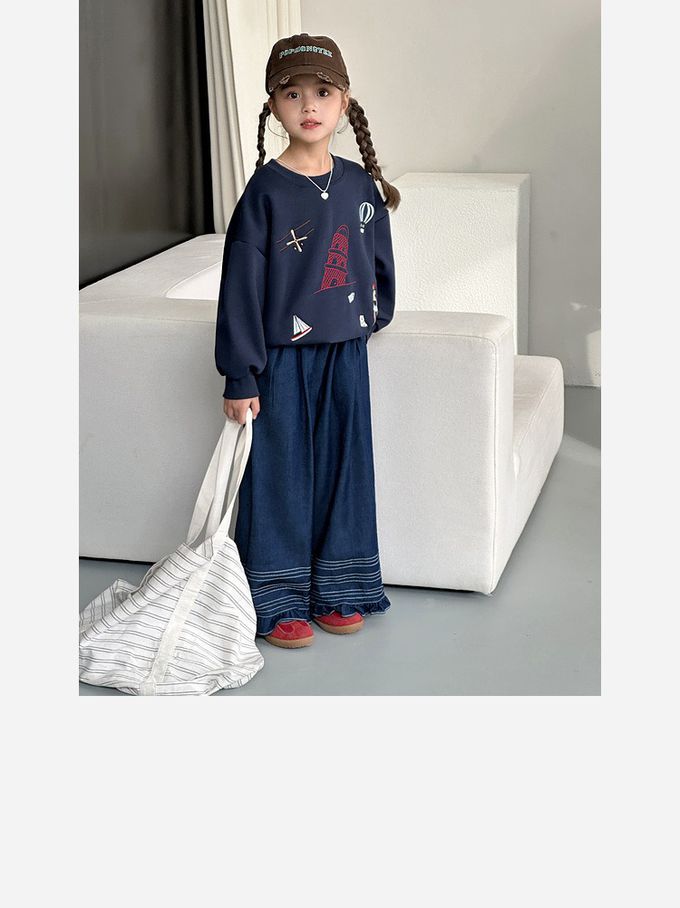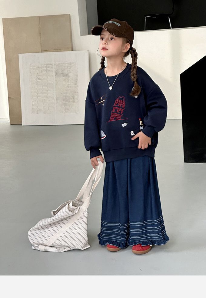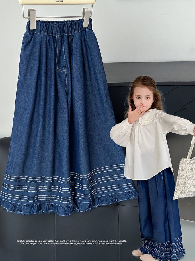 褲腳壓線裝飾+花邊腳口,甜美又俏皮