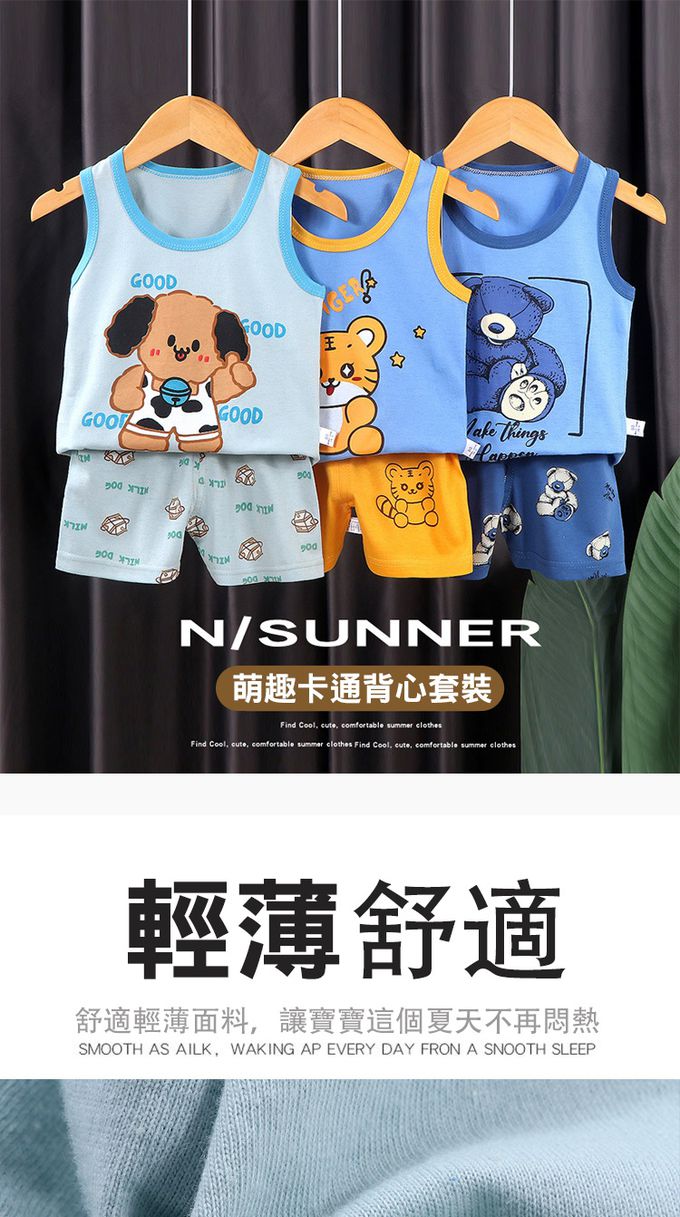 JoyNa - 兒童純棉背心+短褲套裝 寶寶無袖上衣 寶寶短褲-爆米花小狗