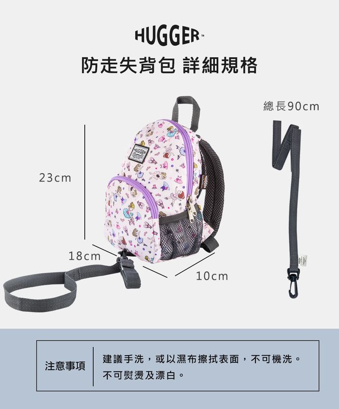 .1~3歲幼幼班(身高約80-100cm)剛學會走路,建議選擇HUGGER防走失背包。