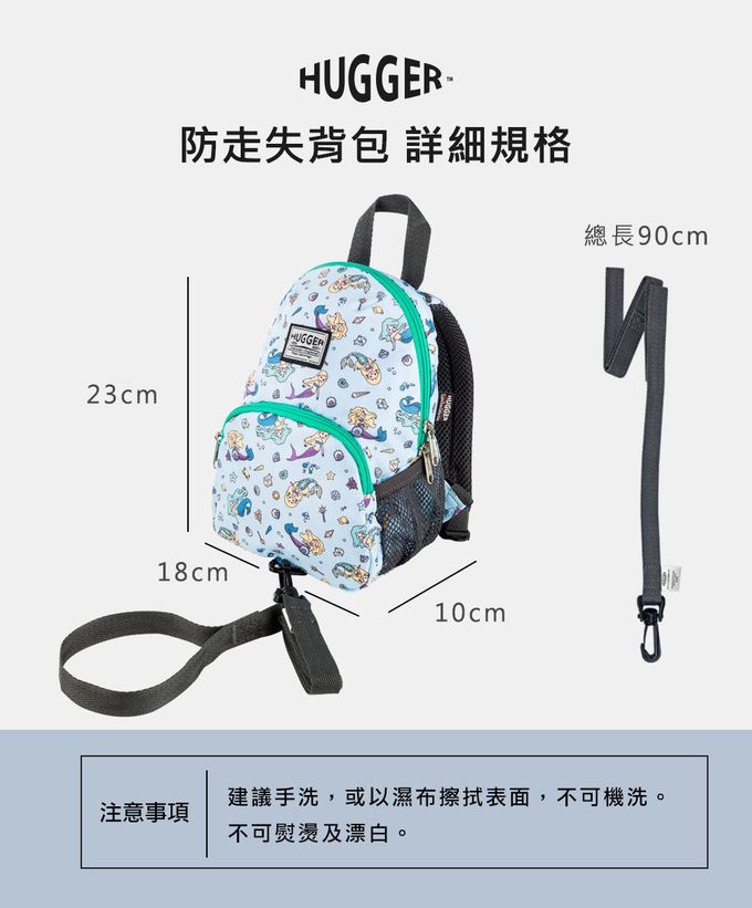 .1~3歲幼幼班(身高約80-100cm)剛學會走路,建議選擇HUGGER防走失背包。