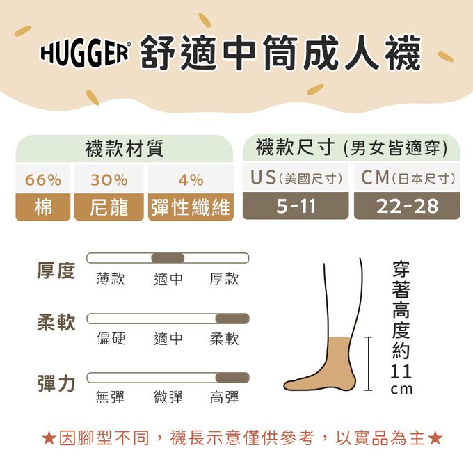 HUGGER - 舒適中筒親子棉襪 - 單一尺寸,輕鬆親子搭配或是手足/好友襪!