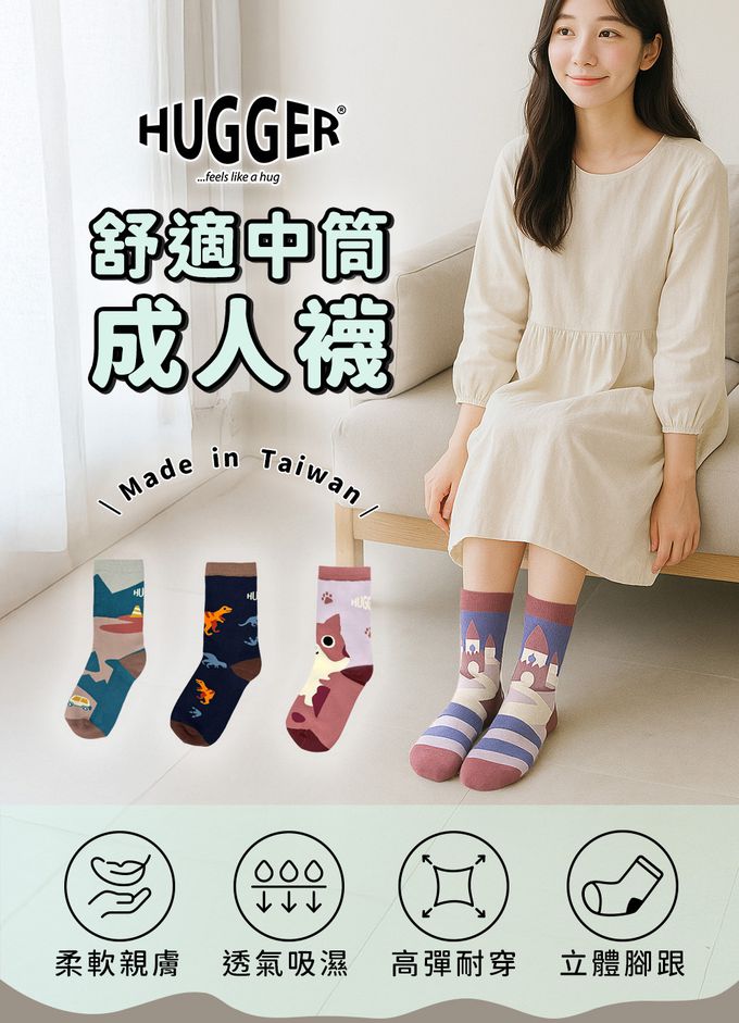HUGGER 「像擁抱一樣的舒適」,堅持使用高品質原料、舒適設計與台灣製造,打造每一雙真正「貼合腳心」的襪子。每一款皆為實穿設計,滿足日常、通勤、戶外各式穿著需求,與兒童背包經典圖案設計相呼應,打造最具儀式感的親子出遊穿搭!輕鬆穿整天,好襪不妥協!