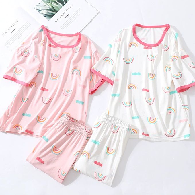 莫代爾短袖套裝/家居服-彩虹-粉色