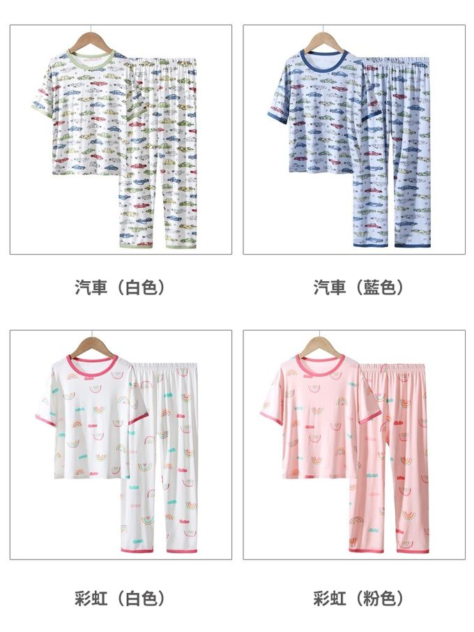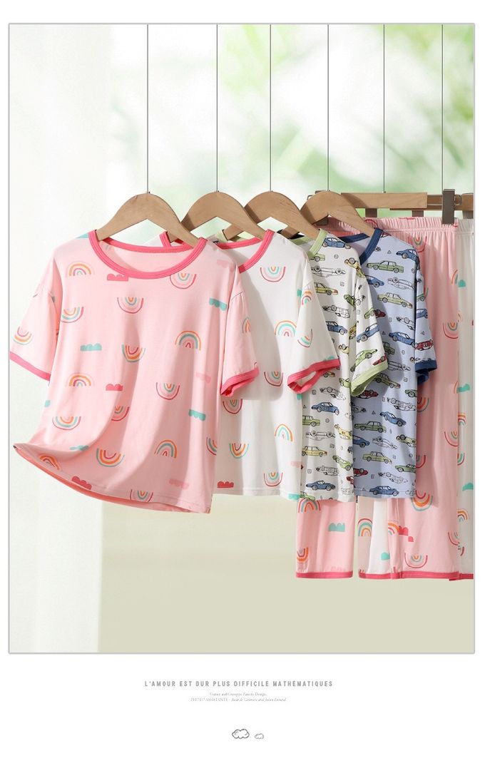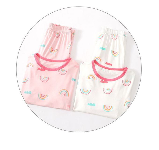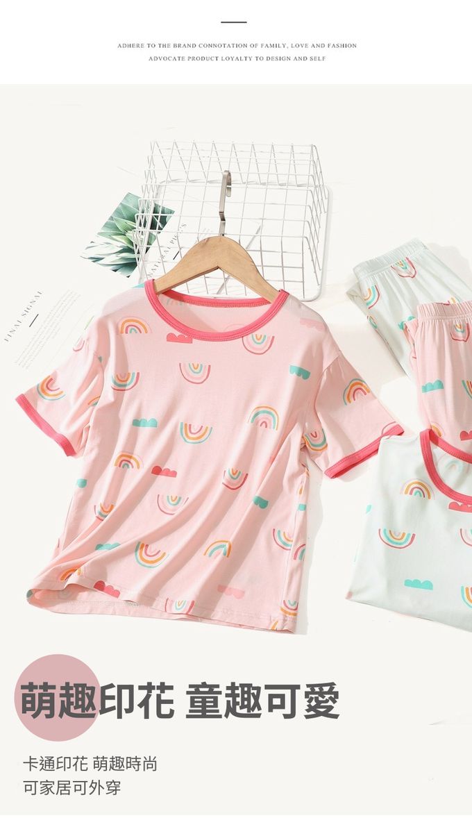 MAMDADKIDS - 莫代爾短袖套裝/家居服-彩虹-粉色 (110cm)