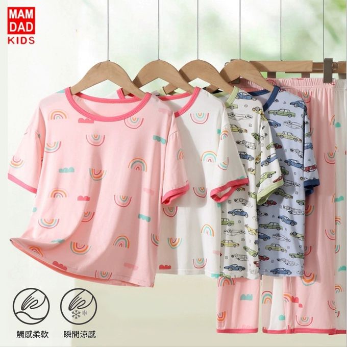 MAMDADKIDS - 莫代爾短袖套裝/家居服-彩虹-粉色