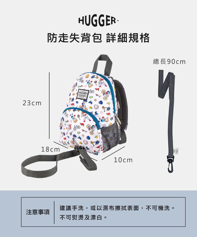 .1~3歲幼幼班(身高約80-100cm)剛學會走路,建議選擇HUGGER防走失背包。