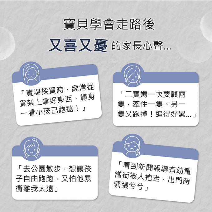 問:帶家中的小寶貝出門,常常甩掉大人的手,頭也不回就亂跑不見,用防走失背包會有用嗎?
