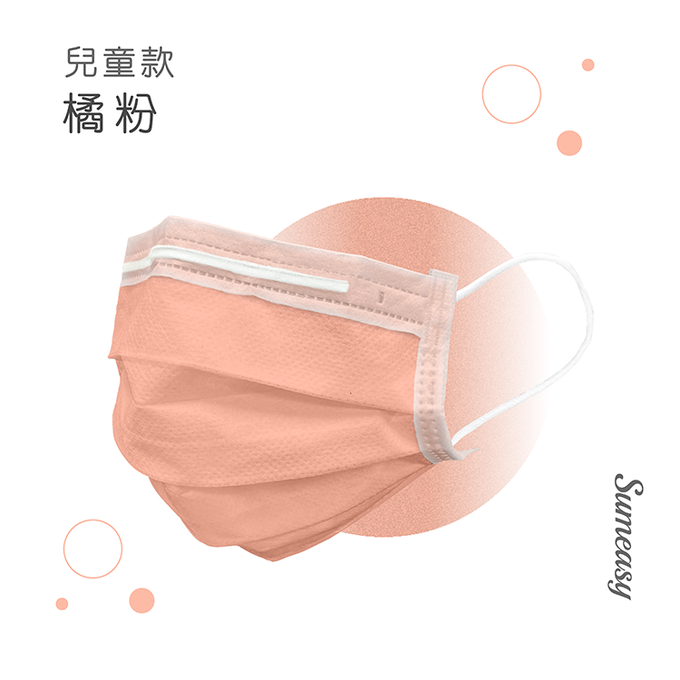兒童平面醫用口罩(6-12歲適用)-50入-橘粉 (9cm x 14.5cm)
