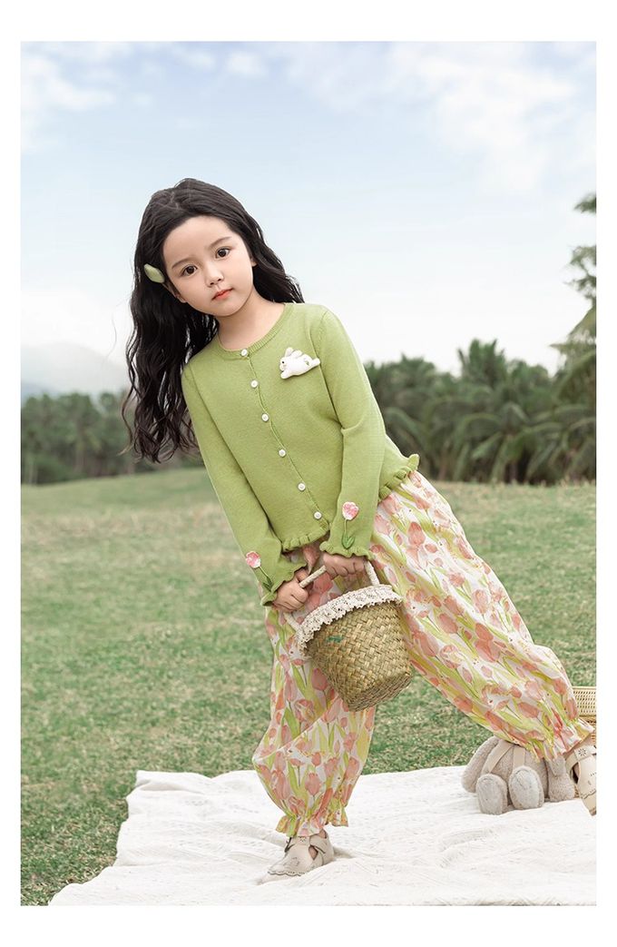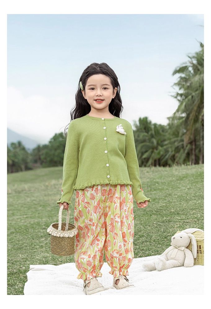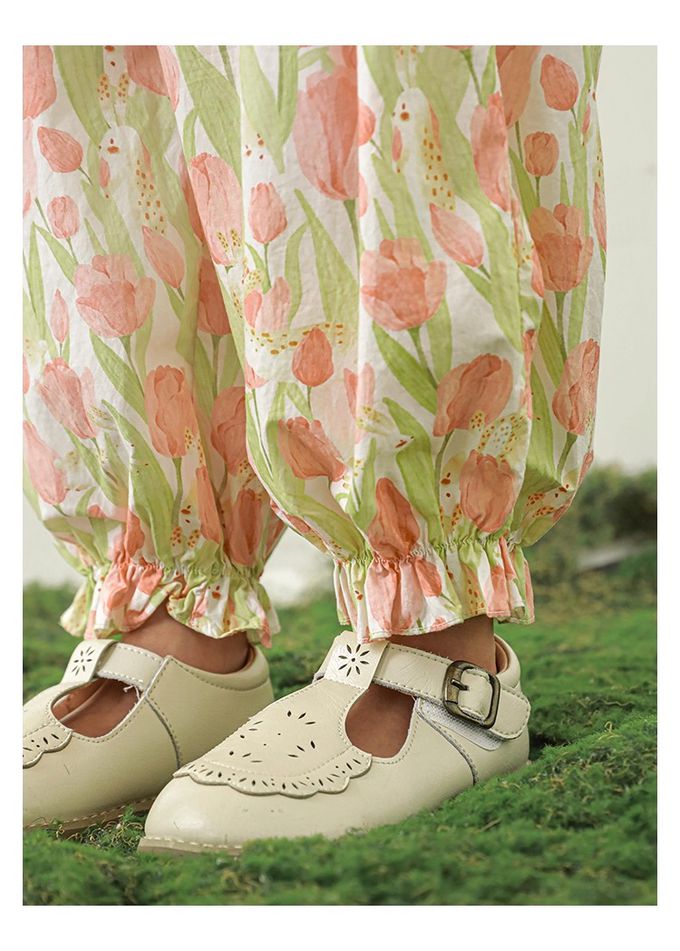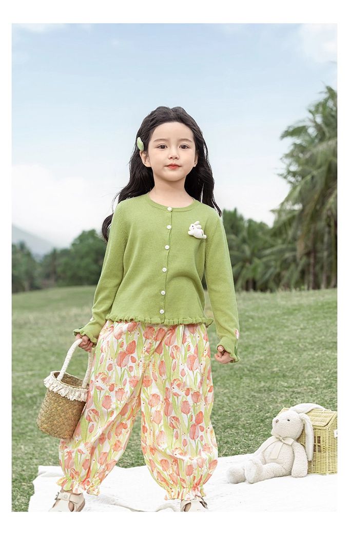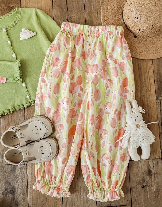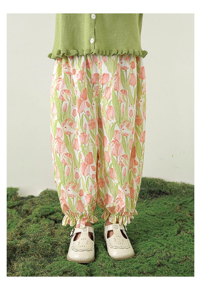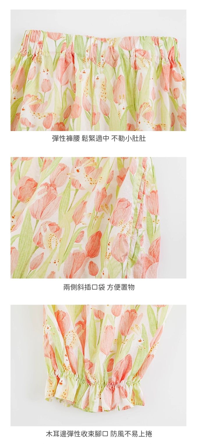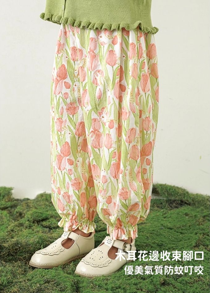 純棉木耳花邊束口褲-鬱金香小兔-粉色