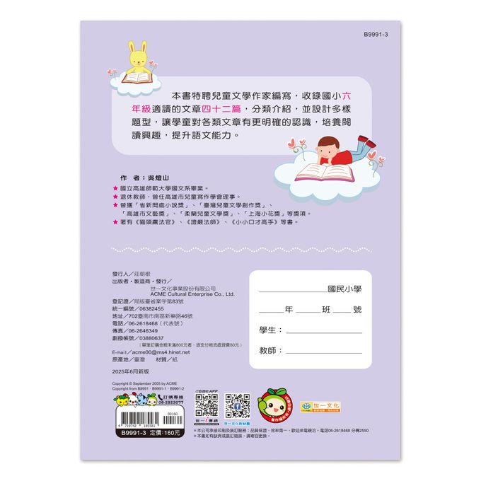 • 品名:每日一文輕鬆讀(六年級)