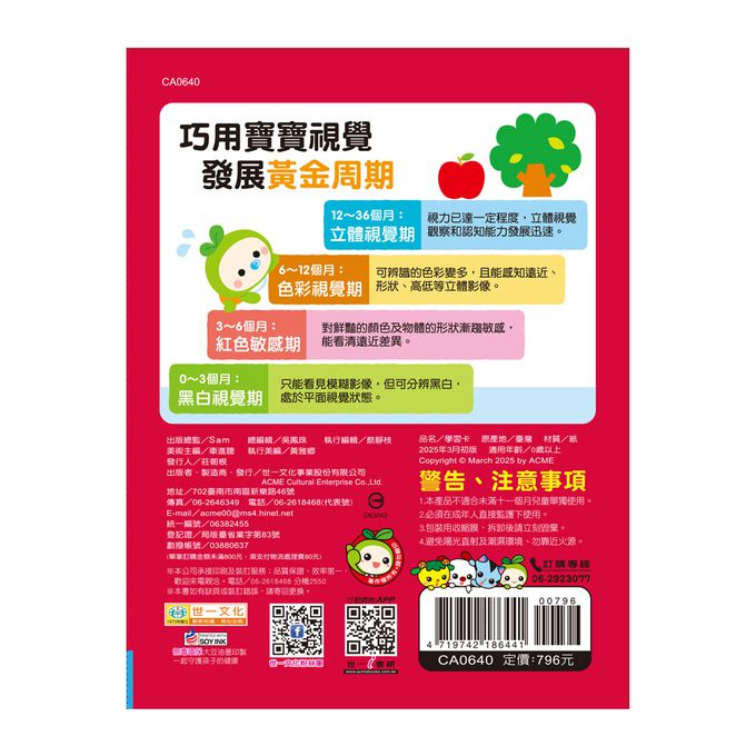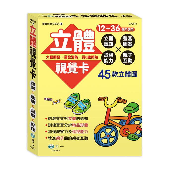 小小孩的第一套視覺卡,本套組包含黑白.原色.彩色.立體四個種類,0到3歲, 是幼兒大腦發育的黃金時期。眼睛,是寶寶接收外界資訊最有效的管道。寶寶接受的視覺刺激越多,頭腦的各項發展就會越精密。視覺卡是促進訓練寶寶視覺發展的最佳工具.