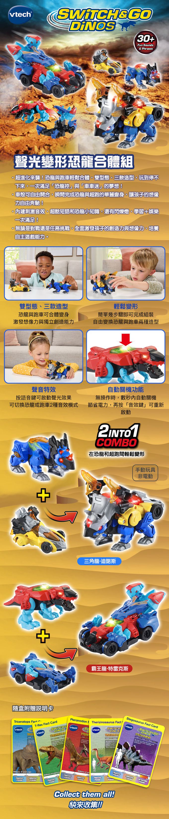 ‧超進化來襲!恐龍與跑車輕鬆合體,雙型態、三款造型,玩到停不下來,一次滿足「恐龍控」與「車車迷」的夢想!