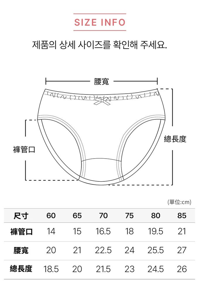 1. 尺寸表單位皆為公分(cm),實際尺寸會因布料彈性、水洗、測量起迄點等因素略有誤差。