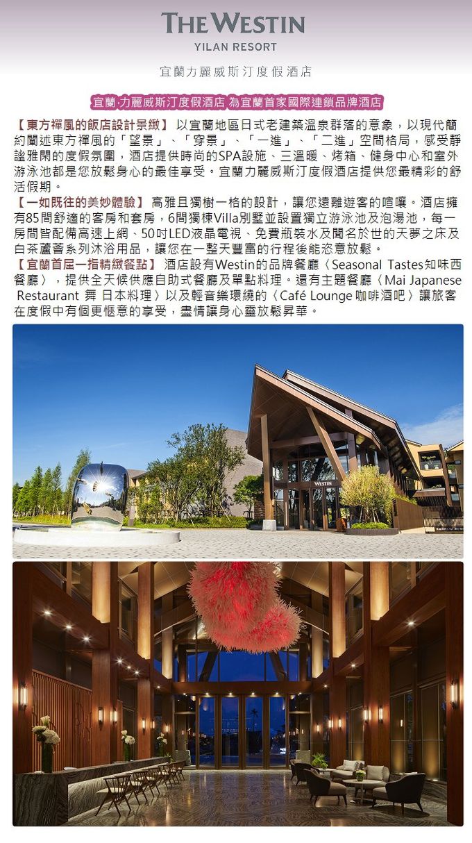 6.相關未盡事宜以官網及現場公告為主,宜蘭力麗威斯汀度假酒店對優惠方案有最終解釋權。