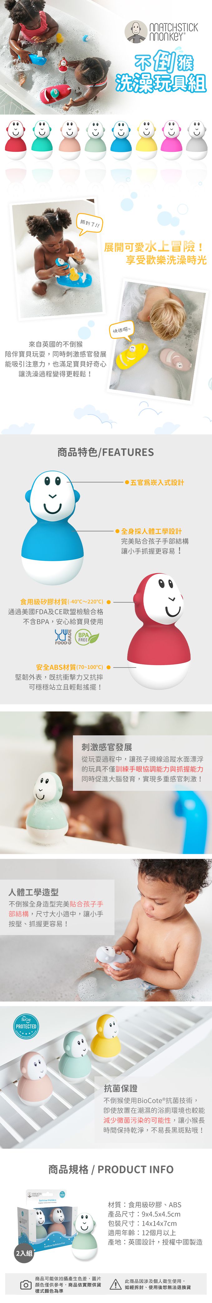 - 品名:不倒猴洗澡玩具組(2入/組)
