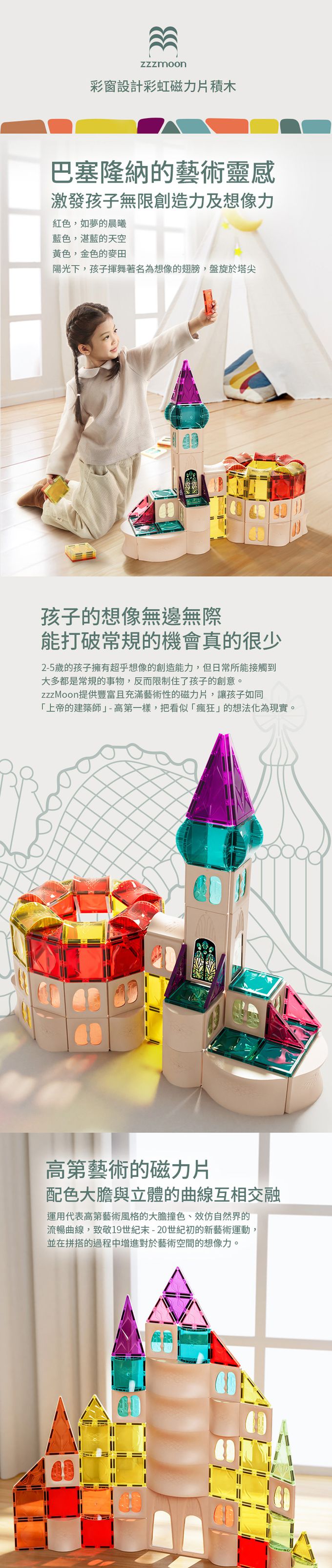 |zzzMoon 彩窗設計彩虹磁力片積木|