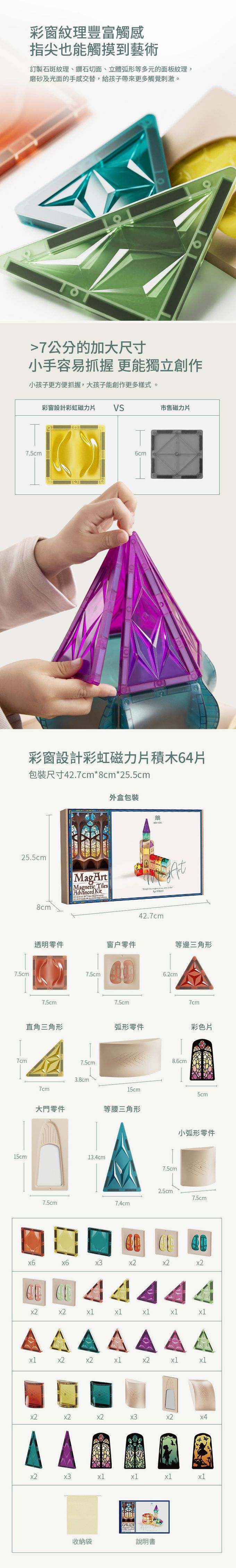 品名:彩窗設計彩虹磁力片積木 110片