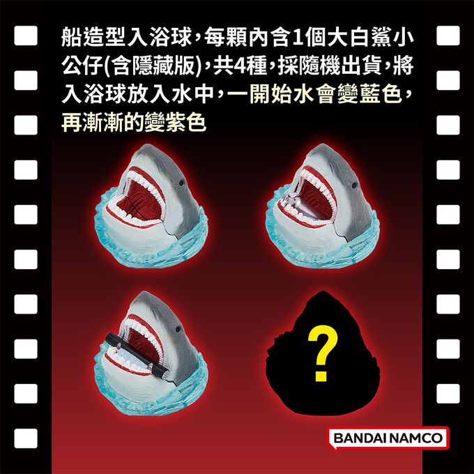 船造型入浴球,每顆內含1個大白鯊小公仔(含隱藏版),共4種,高度約46mm,採隨機出貨,