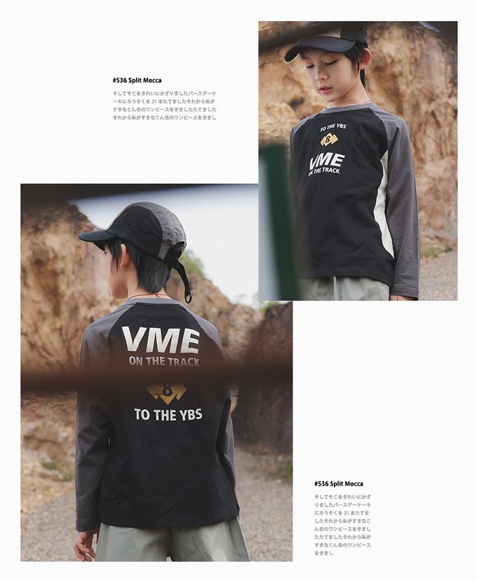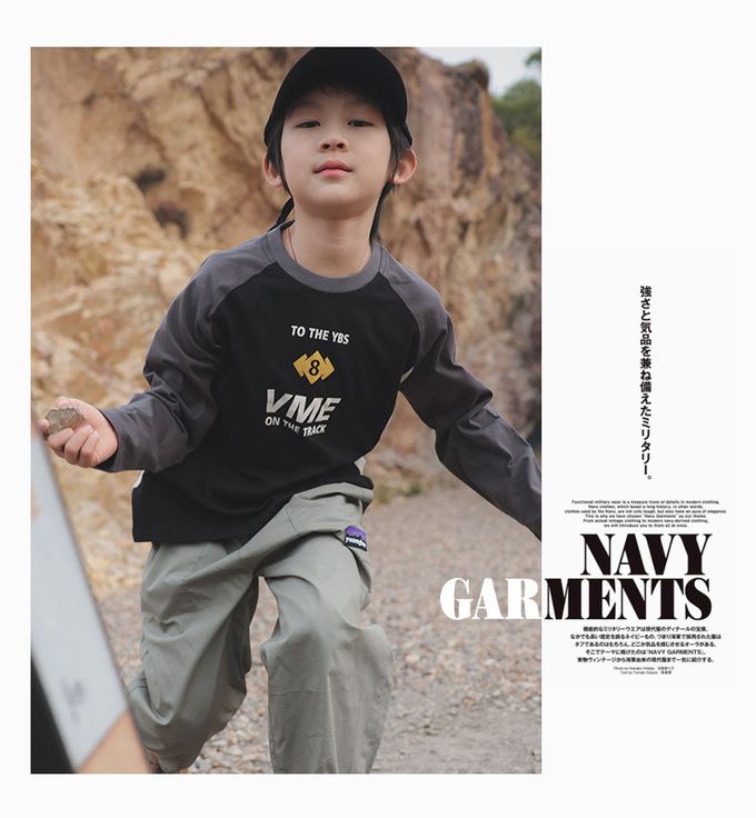 Y B S - 純棉圓領長袖上衣-一起去露營-拼袖杏