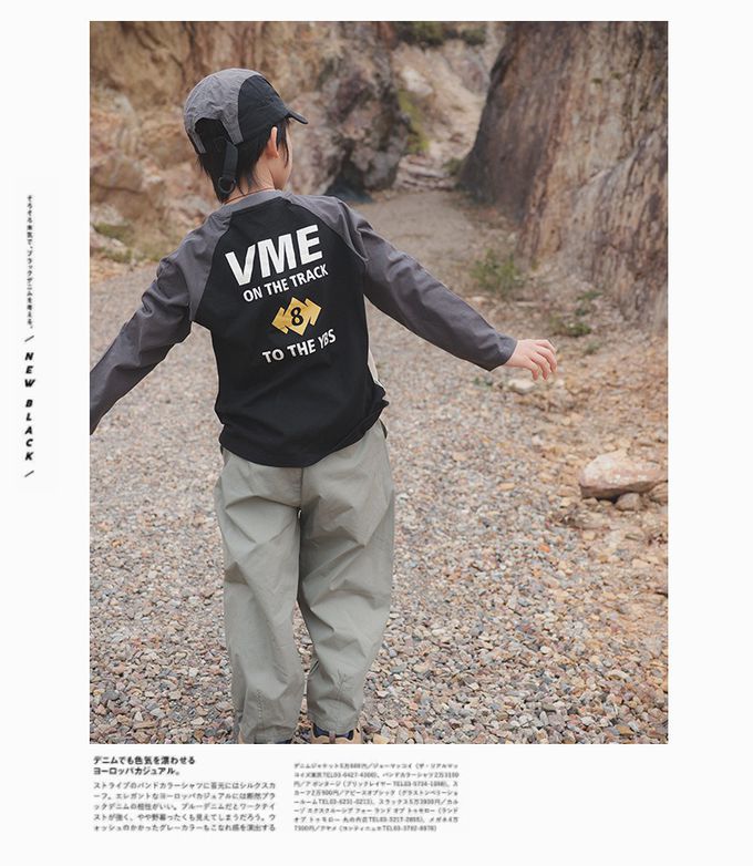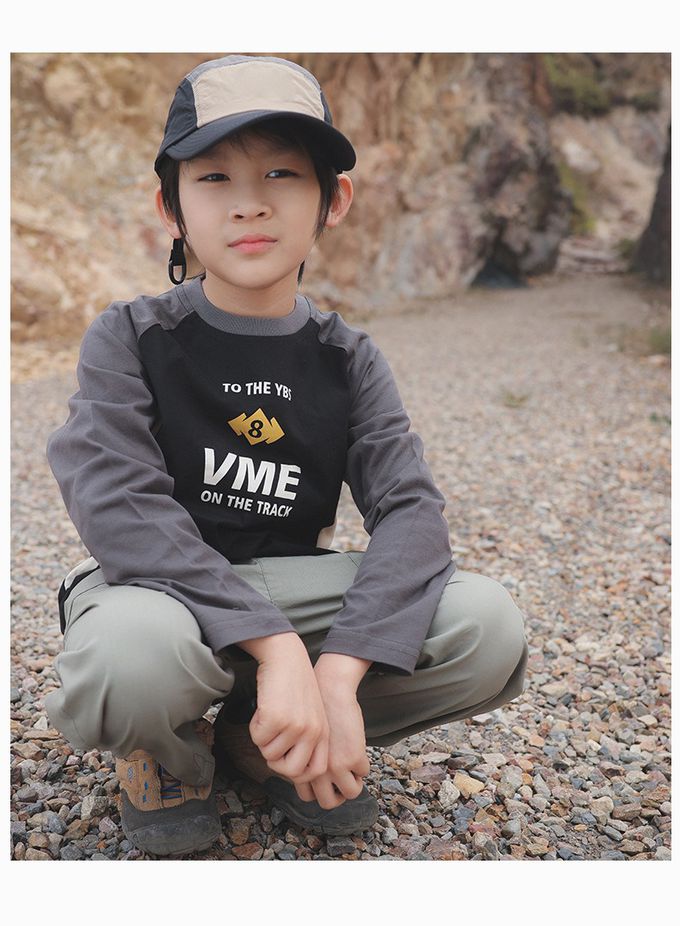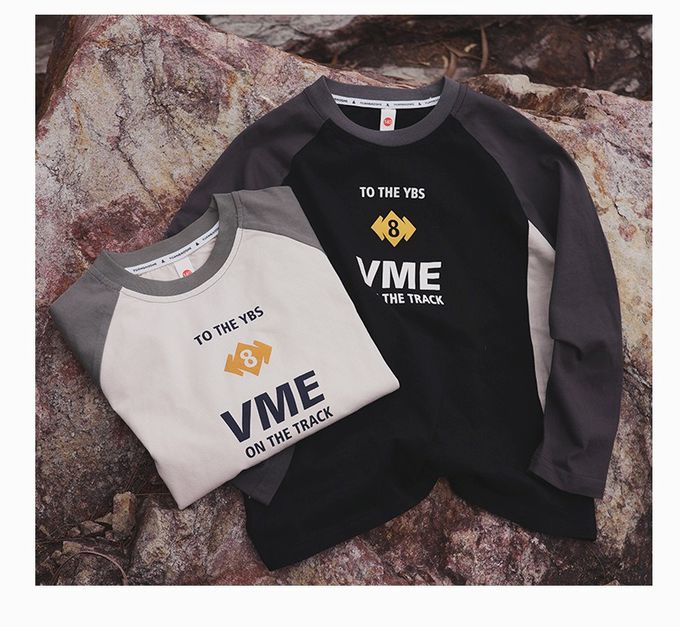 純棉圓領長袖上衣-山系字母-拼色黑灰
