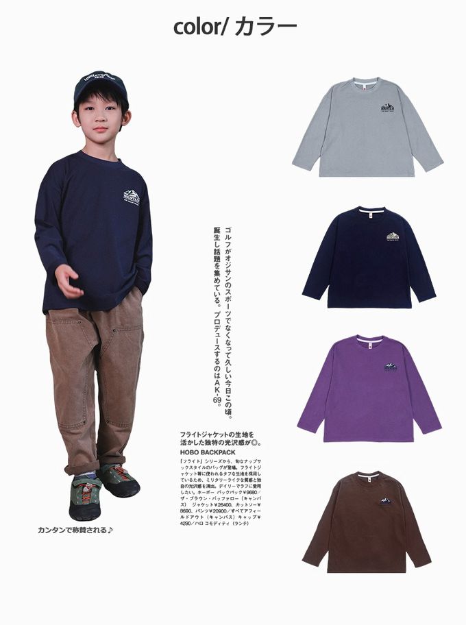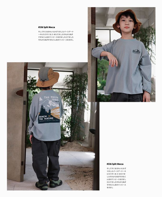 Y B S - 純棉圓領長袖上衣-一起去露營-拼袖杏
