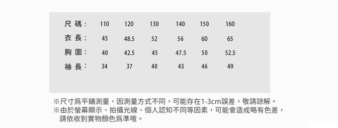110cm、120cm、130cm、140cm、150cm、160cm