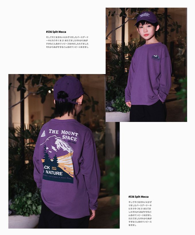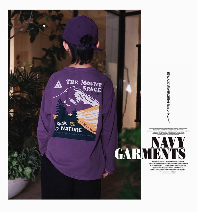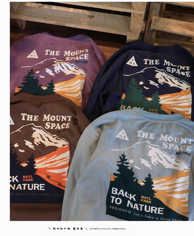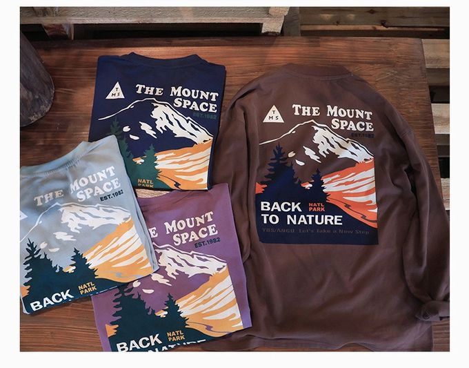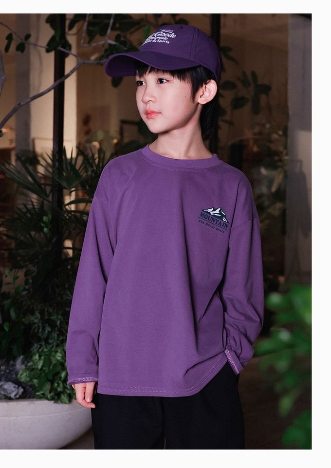 純棉圓領長袖上衣-撞色山脈-灰紫