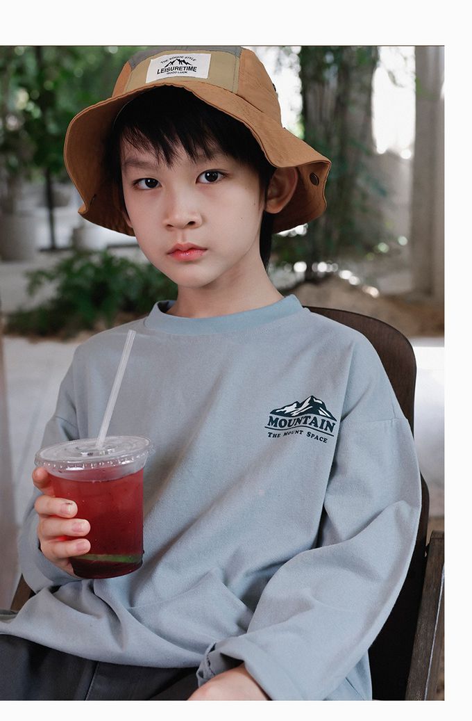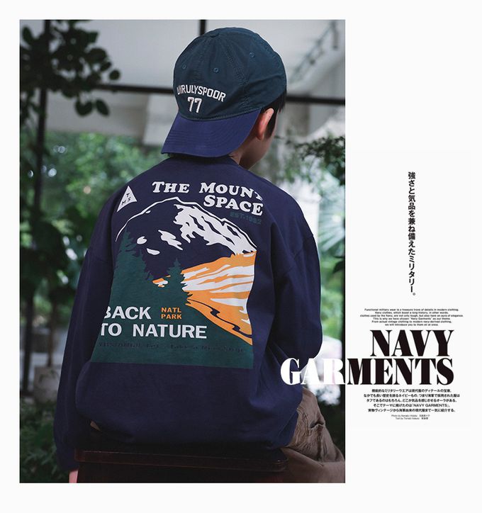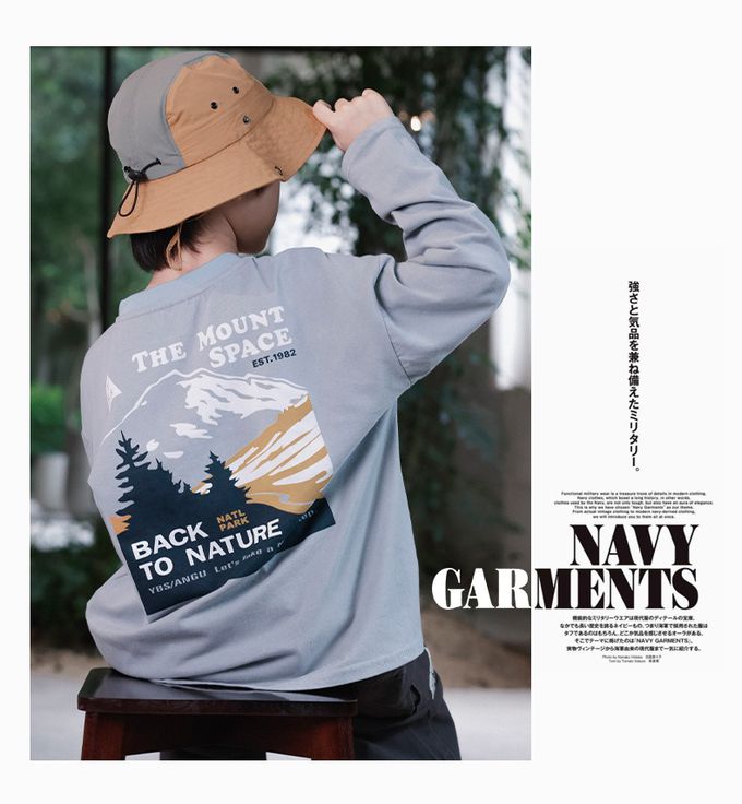 Y B S - 純棉圓領長袖上衣-一起去露營-拼袖杏